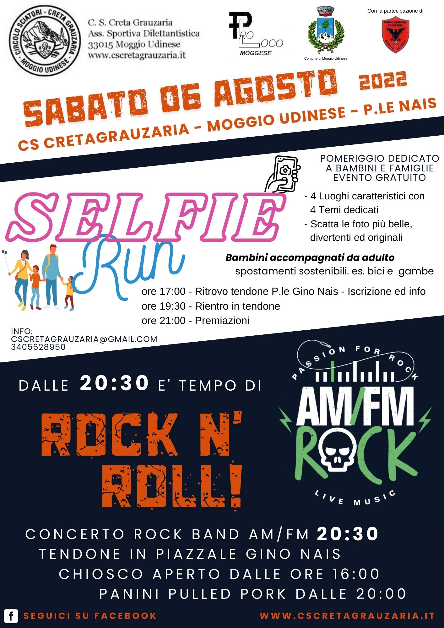 Pomeriggio dalle ore 17.00 ‘Selfie Run’ per tutti i bambini accompagnati da genitori, 4 luoghi caratteristici di Moggio e 4 temi per scattare le foto più originali e divertenti. (partecipazione gratuita)